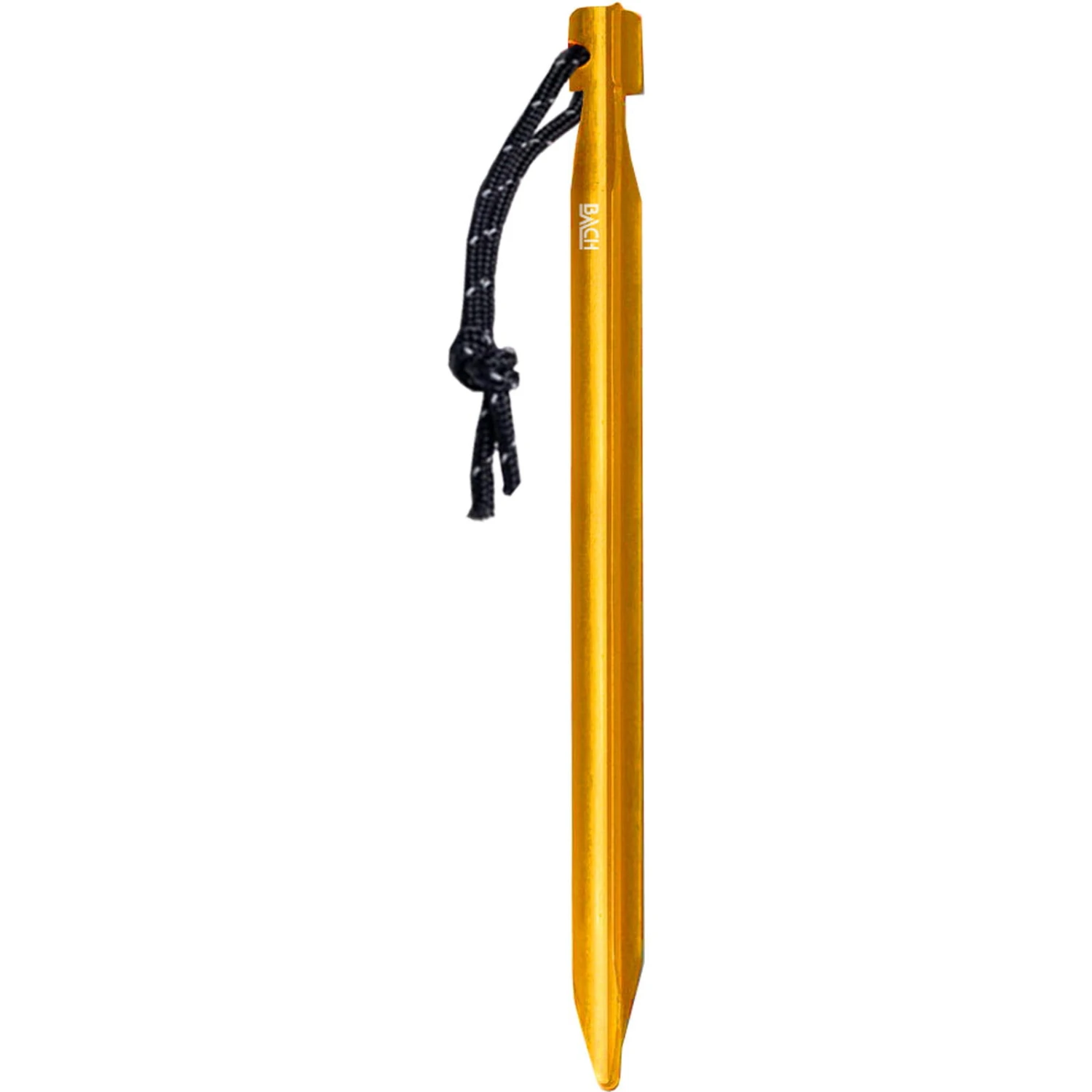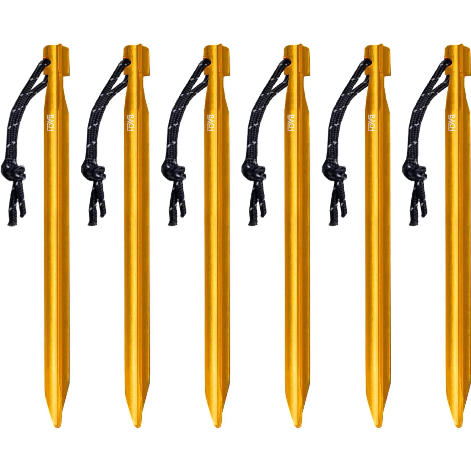 Die UL Twisted Y16 Pegs von BACH sind ultraleichte, geschwungene Heringe aus Aluminium. Diese Aluminumheringe in 16 cm Länge können in nahezu allen Bodenarten verwendet werden, eignen sich aber besonders für feste Böden. Die Y-Form sorgt für ein gutes Eindringen in den Boden und bietet einen effektiven Halt. Eloxierte Aluheringe in goldgelb mit Kordel zum rausiehen eigenen sich für Zelte, Tarps und andere leichte Dinge, bei denen es auch auf das Geiwcht ankommt.