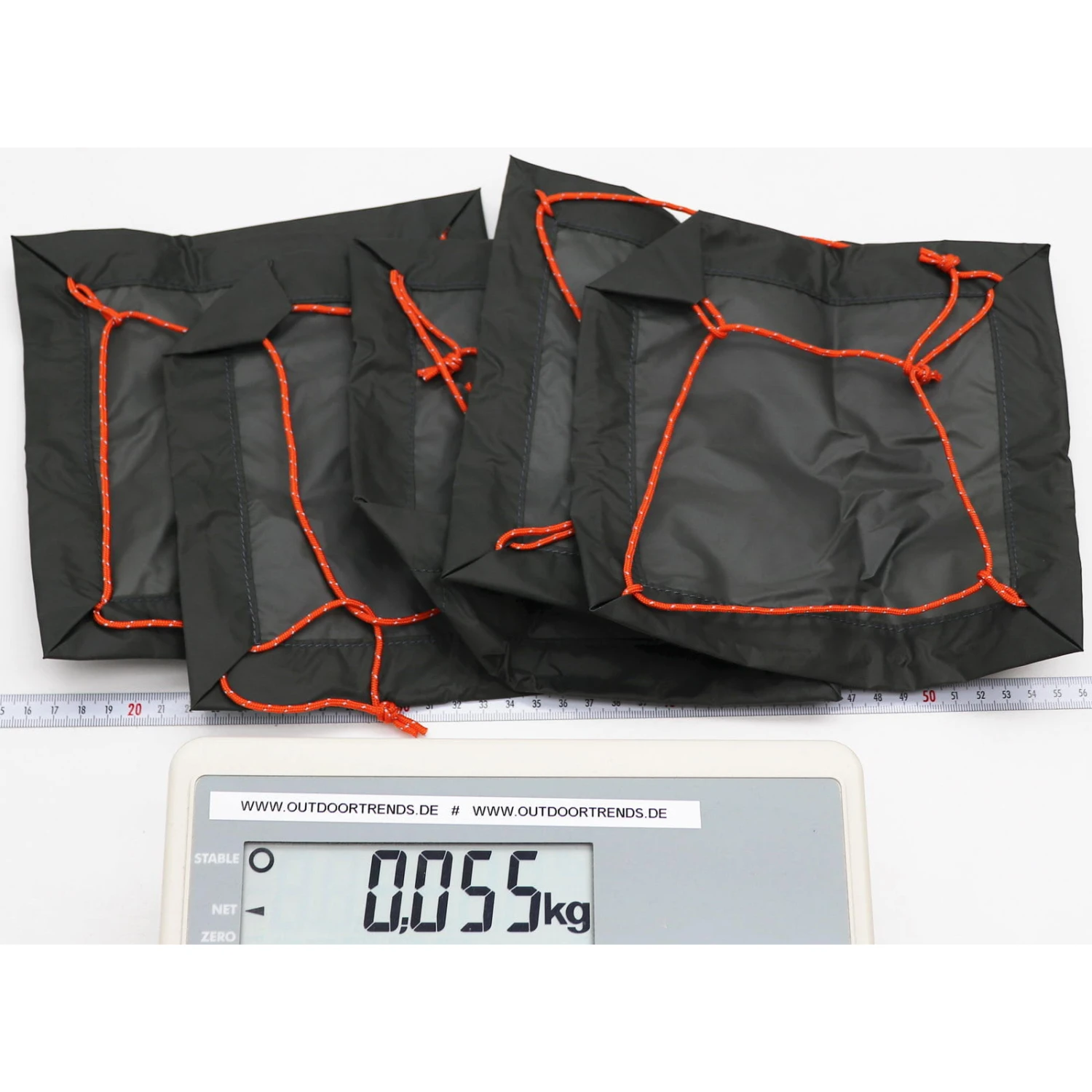 Mit dem Snow & Sand Tent Anchor von EXPED lässt sich eine Zeltschnur auch auf lockerem und schwierigem Untergrund verankern. Der Stoffanker wird mit Sand, Steinen oder Schnee gefüllt und anschließend vergraben. Er besteht aus robustem Taffetanylon und ist dadurch nicht nur leicht, sondern auch extrem klein verpackbar. Es wird ein Set von 5 Stück inkl. praktischer Packtasche geliefert.