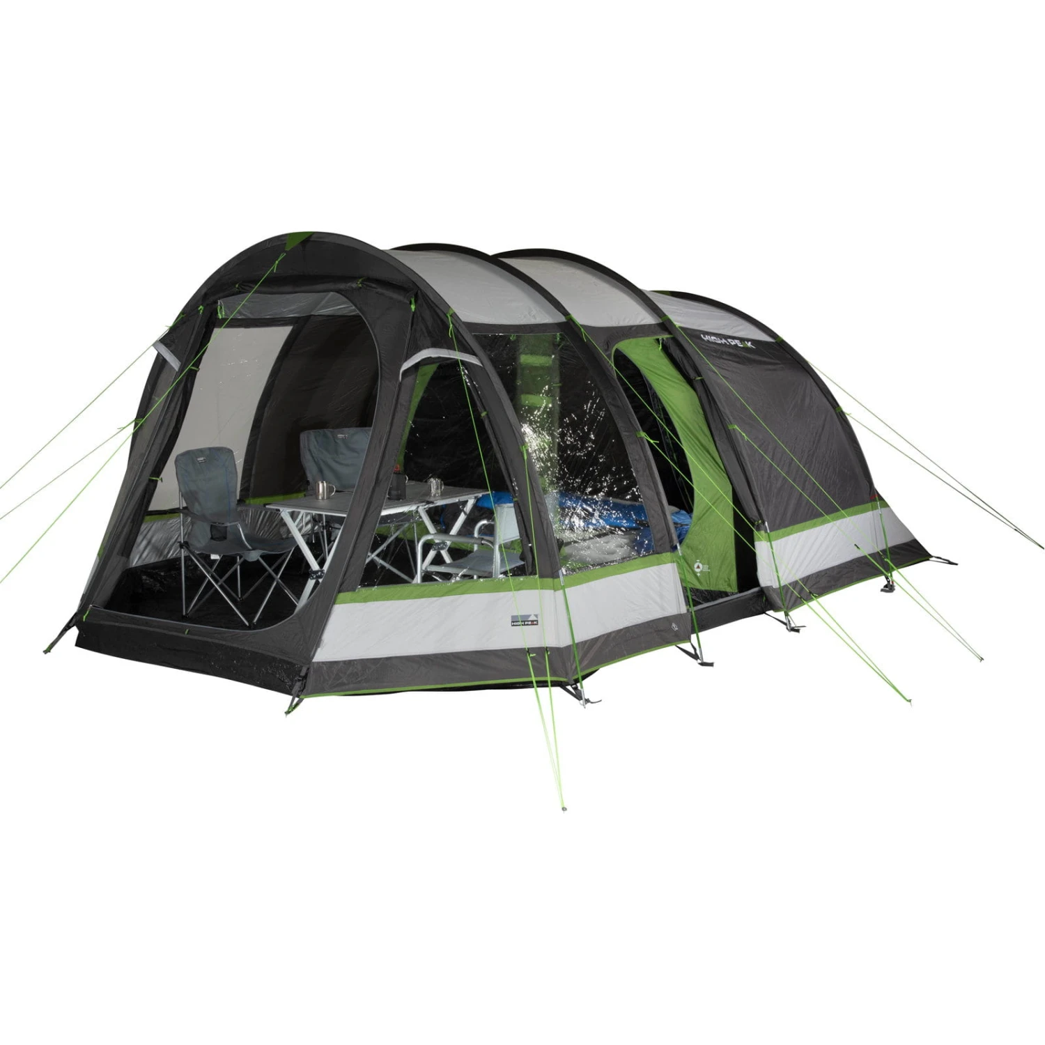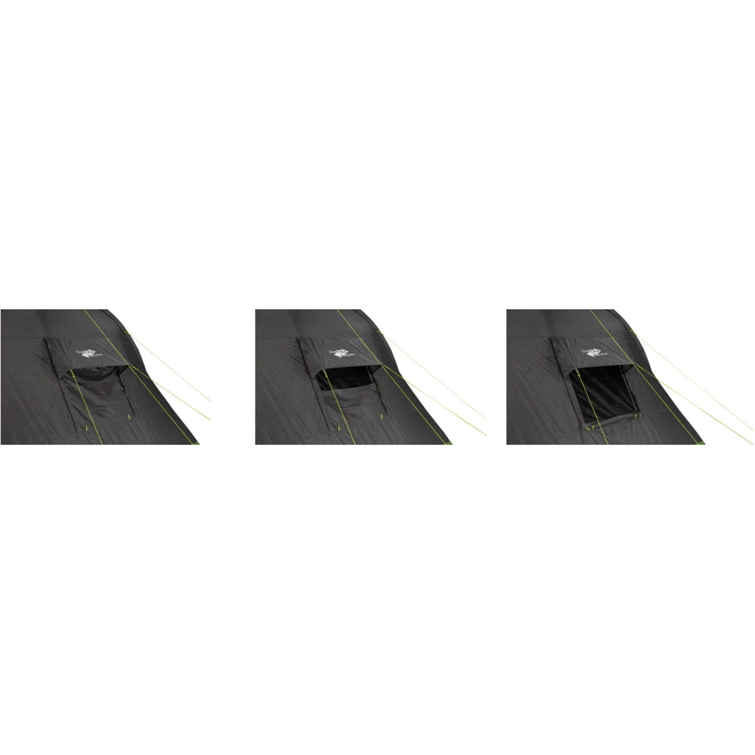 Das Bozen 6.0 von High Peak ist ein vielseitiges, geräumiges Familien-Tunnelzelt für bis zu sechs Personen. Der eingenähte Boden hält Feuchtigkeit, Schmutz und Krabbeltiere fern. Der Wohnraum mit einer Stehhöhe von 2,1 m bietet ausreichend Platz für die Campingausrüstung und verfügt über eine Doppeltür und einen Seiteneingang, die eine zusätzliche Belüftung des Wohnbereichs ermöglichen. Vier Panorama-Klarsichtfolienfenster bringen Licht in den Wohnbereich und Gardinen schützen vor neugierigen Blicken. Das Dach hat eine Aluminium-Beschichtung und ist Hitze reflektierend. Ein weiterer Vorteil des Bozen 6.0 ist sein innovatives, individuell regulierbares Belüftungssystem. Die High Peak 3-Stufen Dual Flow Ventilation im Schlafbereich passt sich jeder Wettersituation optimal an und kann je nach Klima bequem von innen variabel bedient werden. Zusätzlich verfügt das Tunnelzelt über extra starke Reißverschlüsse mit Reißverschlussabdeckungen und Nähte, die mit Nahtband wasserdicht versiegelt sind, um die Reißfestigkeit der Nähte zu erhöhen. Das abgedunkelte Innenzelt mit Vario Vent Control System verfügt über zwei Moskitonetz-Eingänge, die lästige Plagegeister fernhalten, ist geräumig und gut organisiert. Mit einer Reißverschluss-Trennwand kann das Innenzelt in eine große Kabine oder zwei getrennte Schlafbereiche unterteilt werden. Es verfügt über fünf praktische Organizer und sechs Innenzelttaschen, in denen persönliche Gegenstände sicher verstaut werden können. Zwei Lampenhalter für Campingleuchten oder Taschenlampen runden den Komfort ab. Das Bozen 6.0 ist ideal für einen erholsamen Familienurlaub und wird mit einem robusten Packsack mit Kompressionsgurten geliefert, der den Transport erleichtert und eine platzsparende Aufbewahrung ermöglicht.