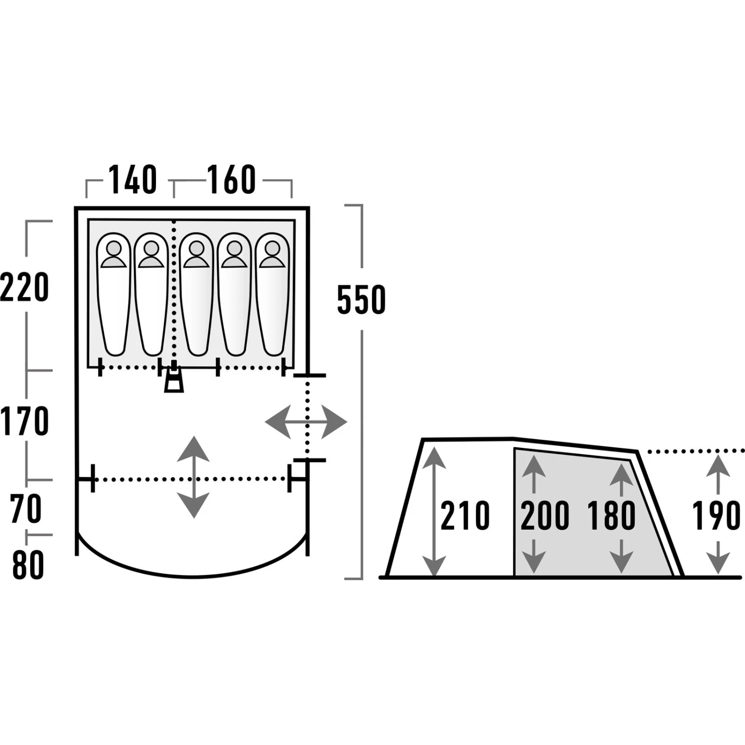 | Maße Außenzelt ca. | 550 x 320 x 210 cm |