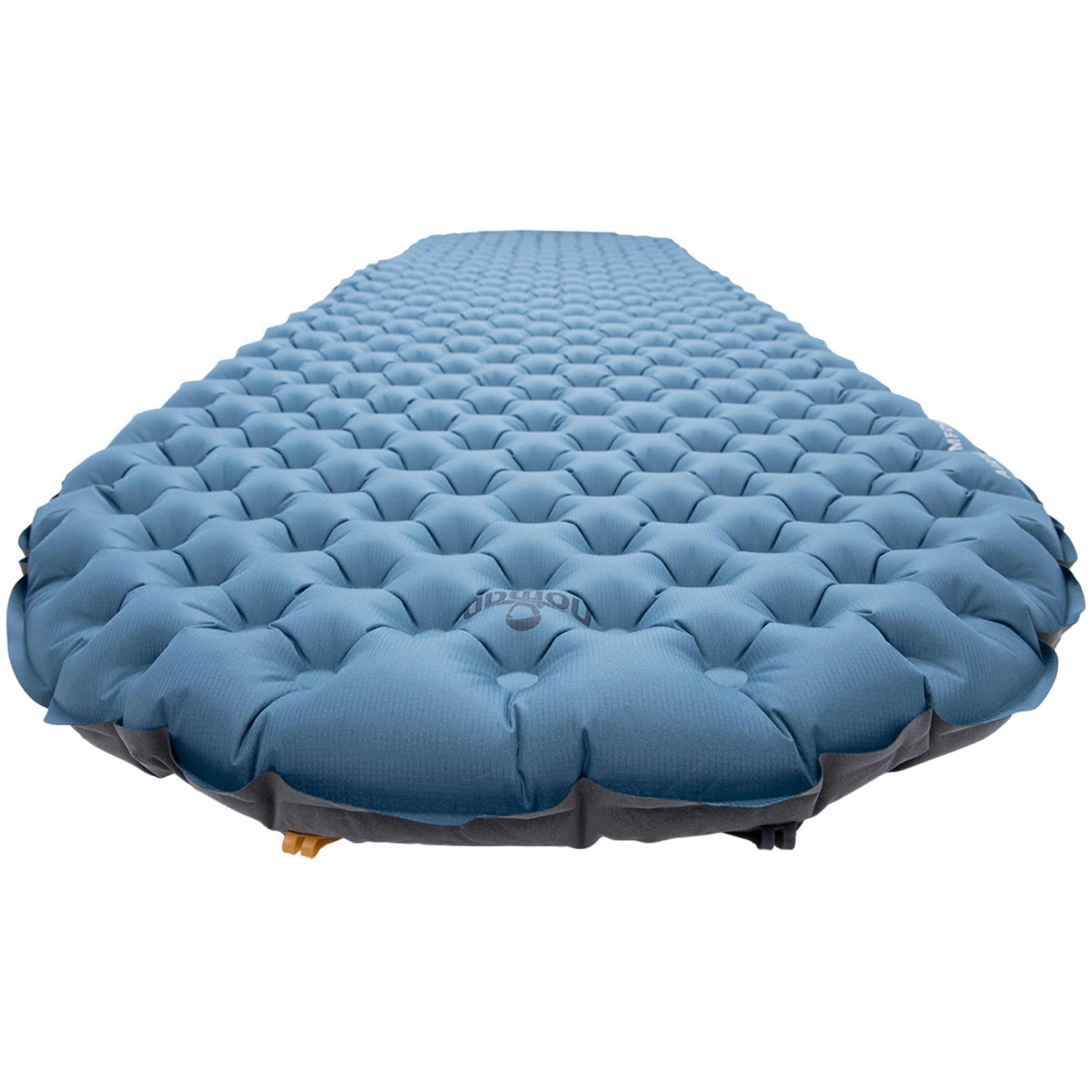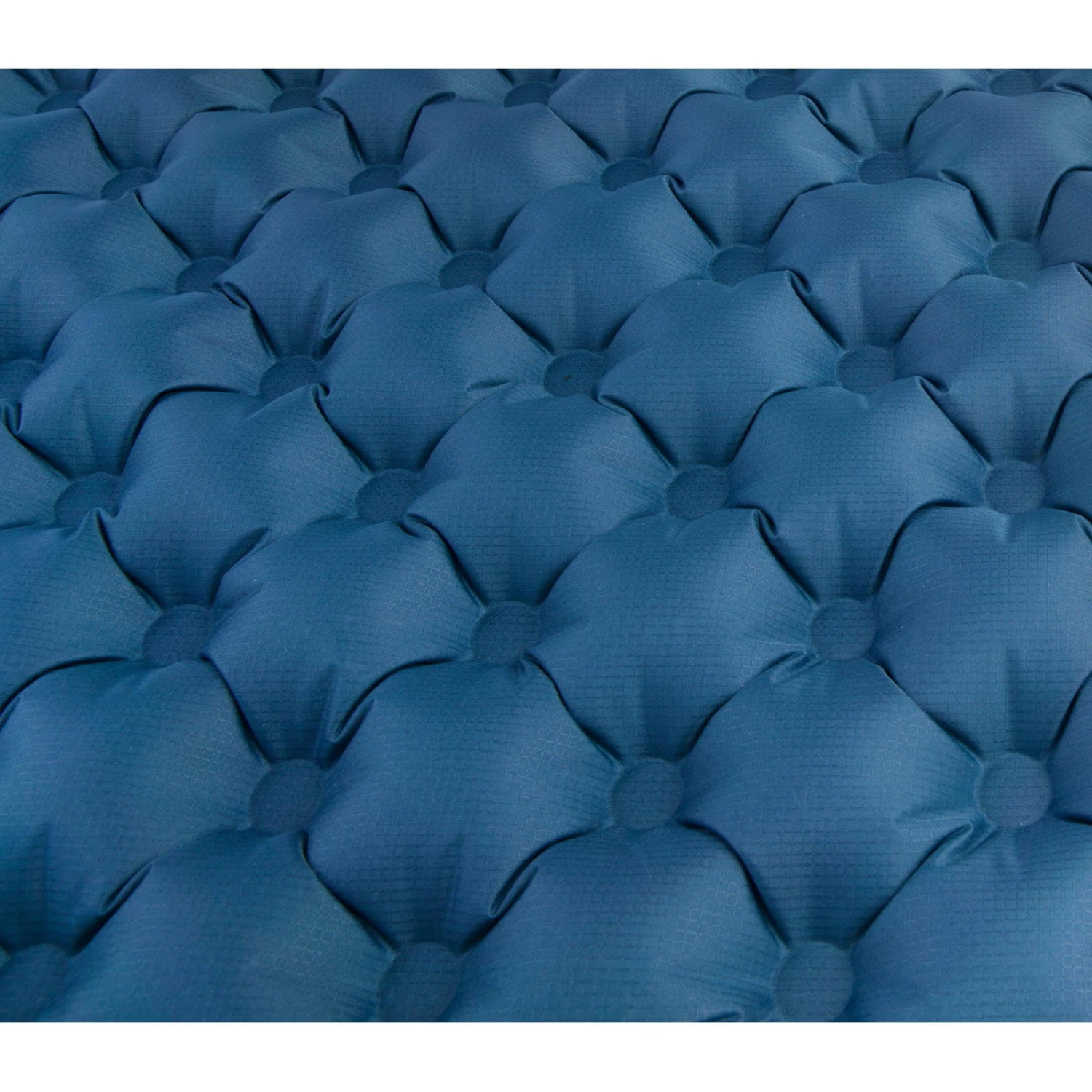 Die Schlafmatte AirTec Comfort von Nomad ist eine isolierende Luftmatratze mit extrem niedrigem Gewicht und kleinem Packvolumen. Das Design dieser Ausführung verhindert kalte Stellen und bietet in Verbindung mit dem einzigartigen Heatlock-System eine bessere Isolierung als die reguläre AirTec-Matte. Die Unterseite der PFC-freien Matte besteht aus extrastarkem Material mit Antirutsch-Funktion. Die beiden Ventile sind mit Einwegfunktion versehen. Zum Lieferumfang gehört ein Packsack, ein Reparaturset und ein Pumpsack.