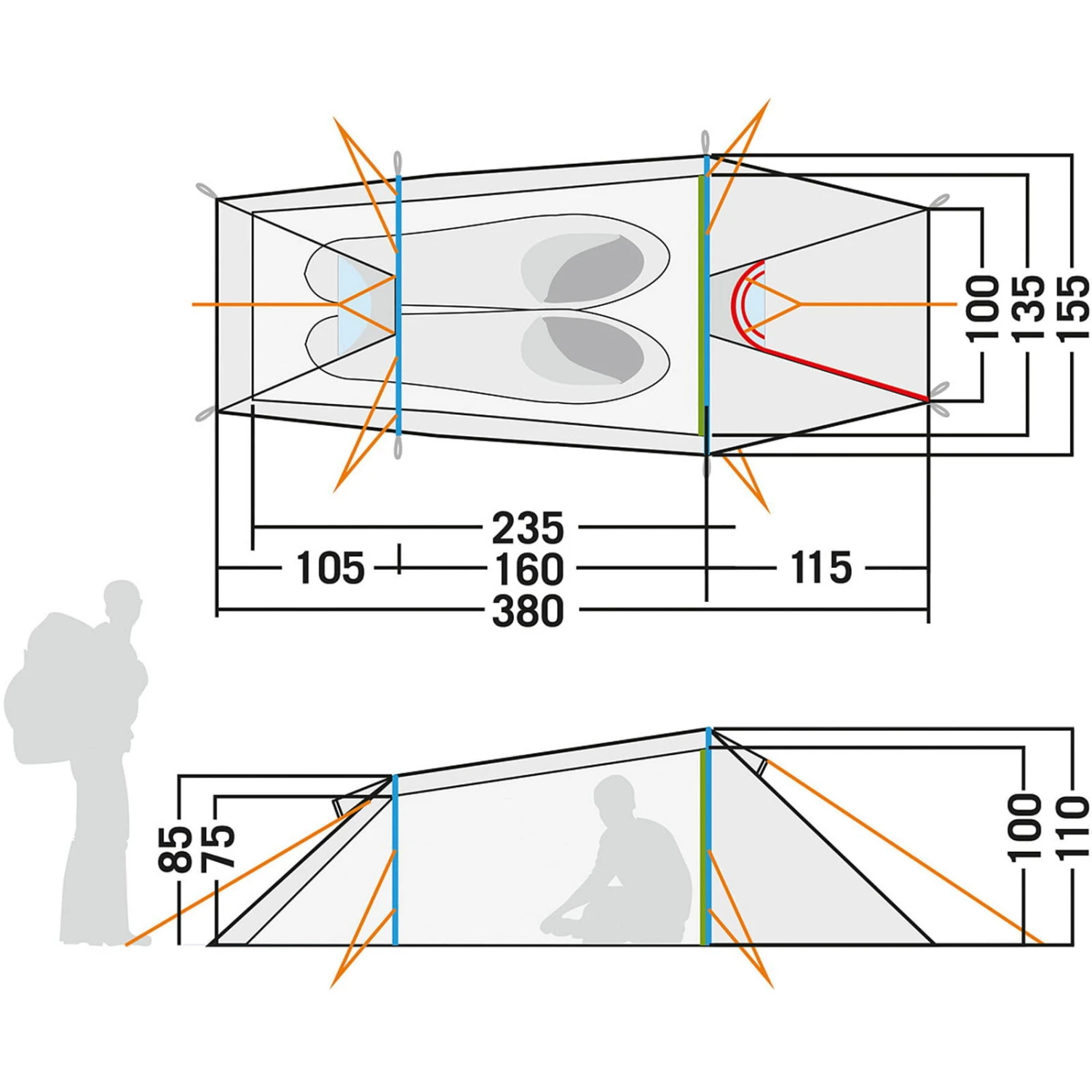 | Eingänge Innenzelt | zwei |