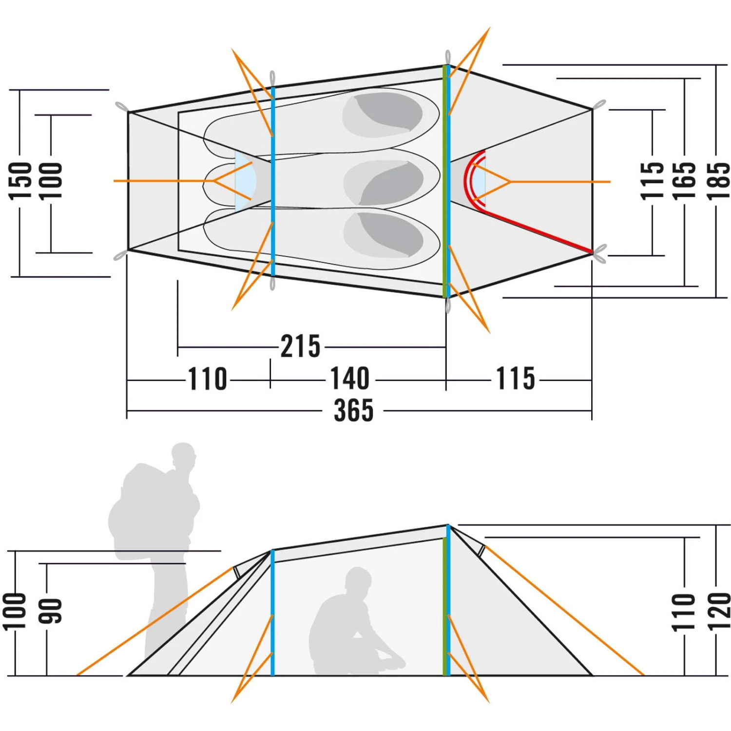 | Maße Außenzelt ca. | 365 x 185 x 120 cm |