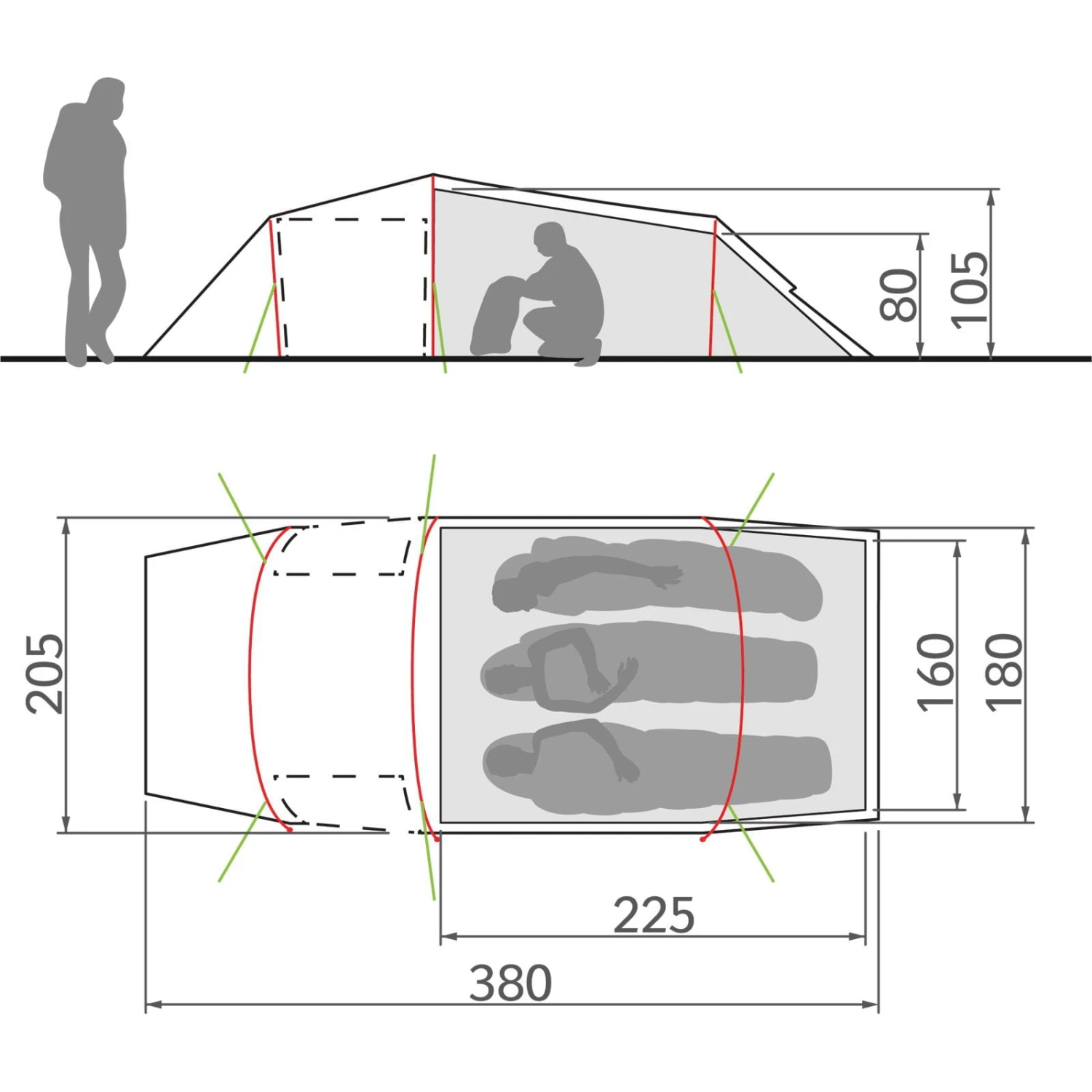 | Maße Außenzelt ca. | 380 x 205 x 110 cm |