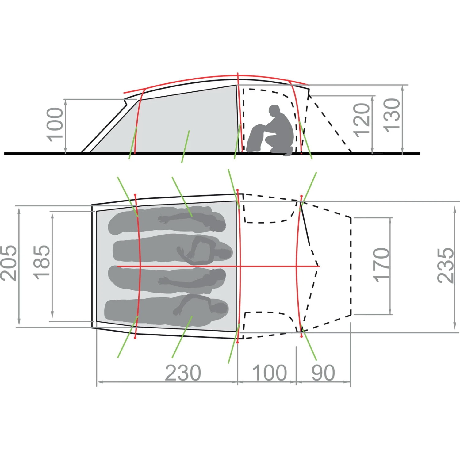 | Maße Außenzelt ca. | 430 x 245 x 140 cm |