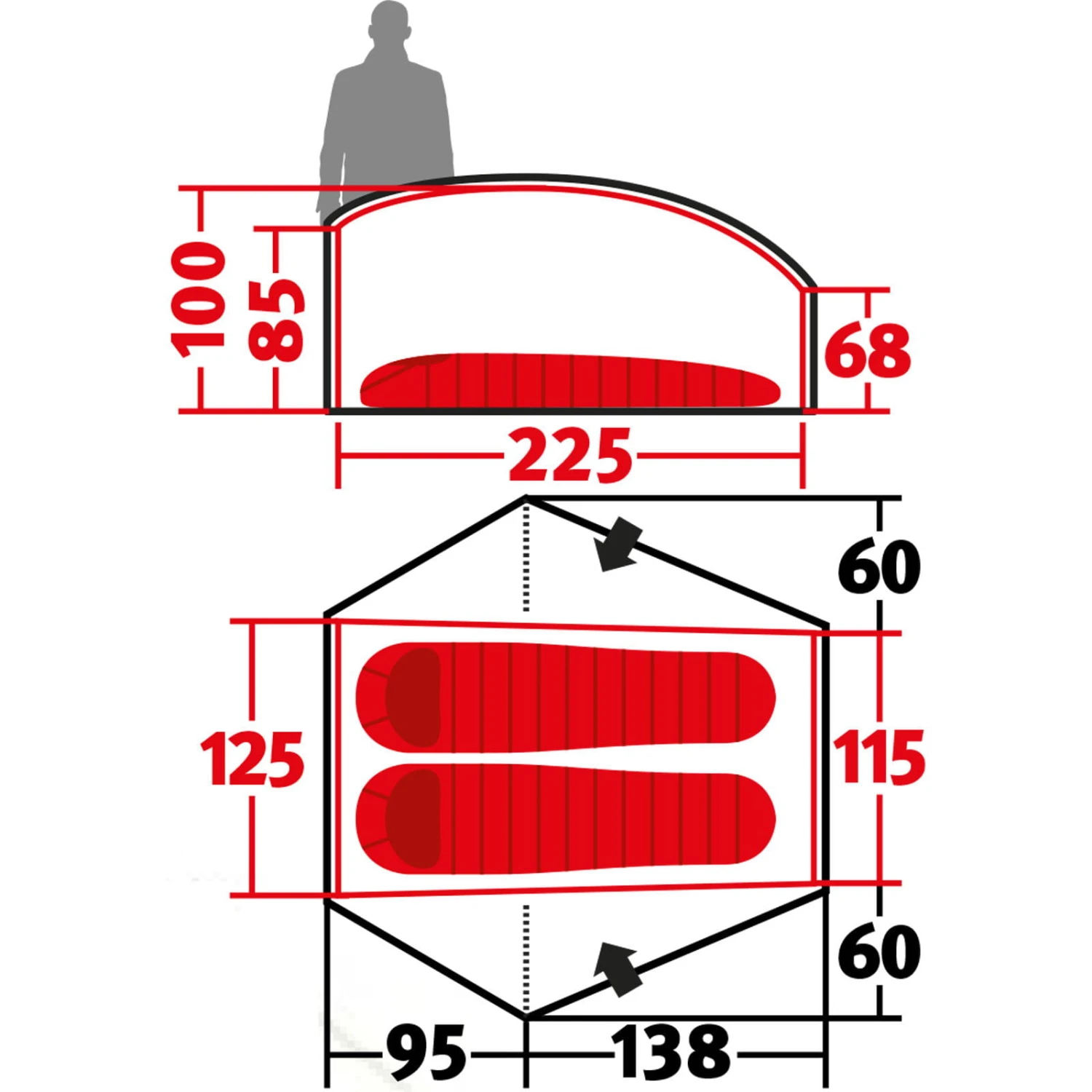 | Eingänge Außenzelt | zwei |