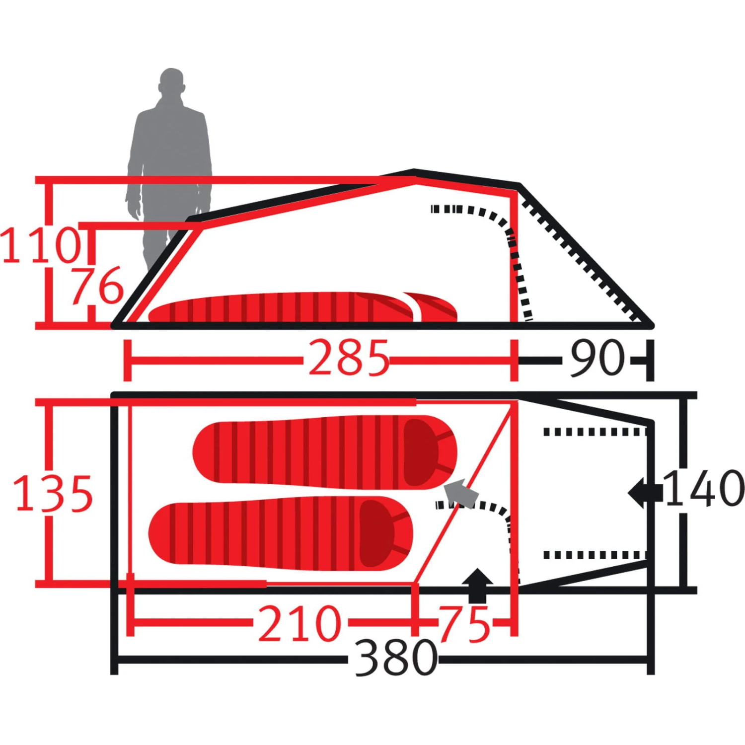 | Eingänge Außenzelt | zwei |
